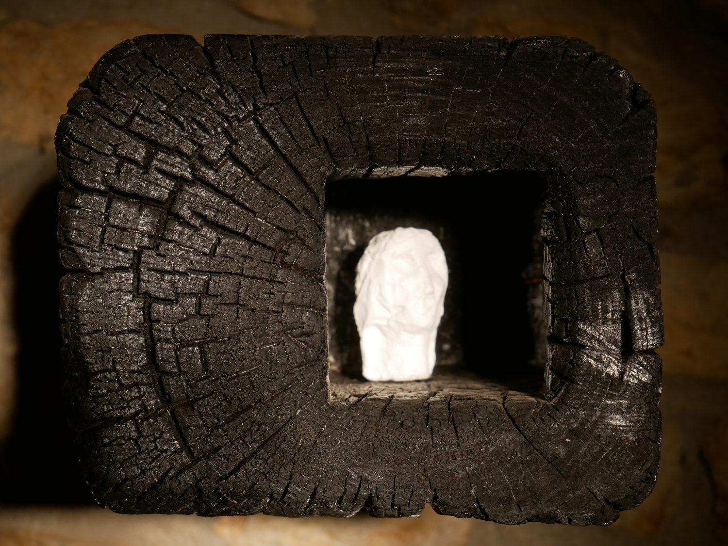 Con el devenir constante del indefectible tiempo,/ de hollín antiguo y oscuro se han teiiido los cimientos y las vigas./ En la cumbre y atalaya/ de tan castigado cerro,/ se alza, altiva y silenciosa, la dama blanca del tiempo y de las cimas./ Bajo la bóveda pétrea/ que resguarda sus empeños, la madre del bien y el mal urde planes en silencio/ y sin prisa./ Los pies los lleva descalzos, de tizne los tiene negros, pero no quiere lavarlos/ por no borrar los recuerdos, las heridas./ AJ asomar la cabeza/ y mirar, siempre a lo lejos, donde otros no ven nada ella ve un futuro pleno/ de semillas./ La luna toca su rostro/ y le ablanda un poco el gesto: nuevos troncos brotarán/ de nuestro cansado suelo algún día./ Autora: Izaskun Avellanas