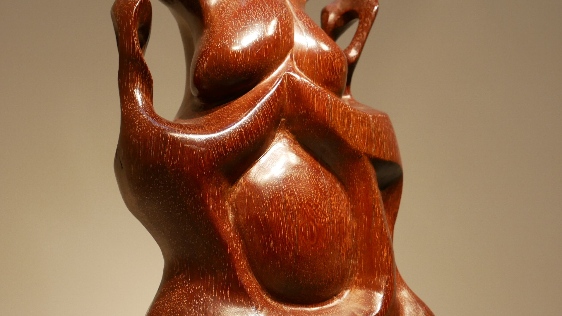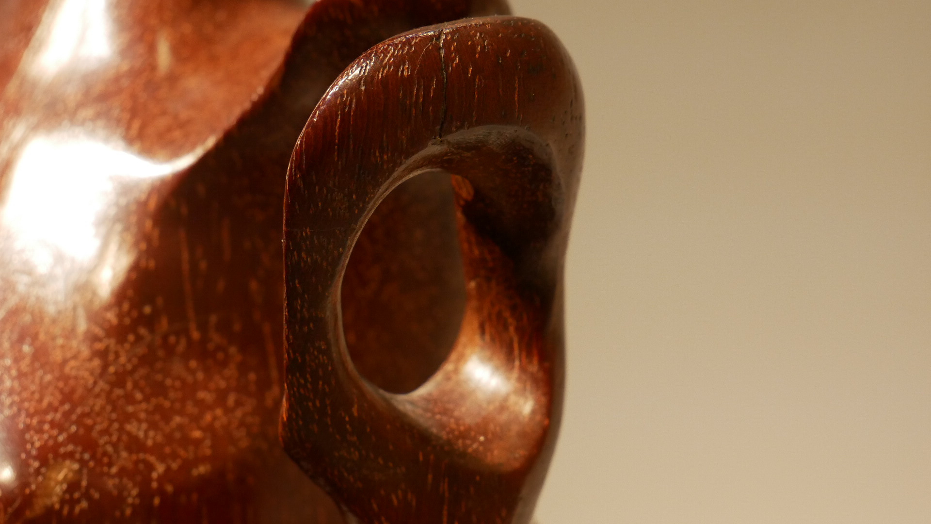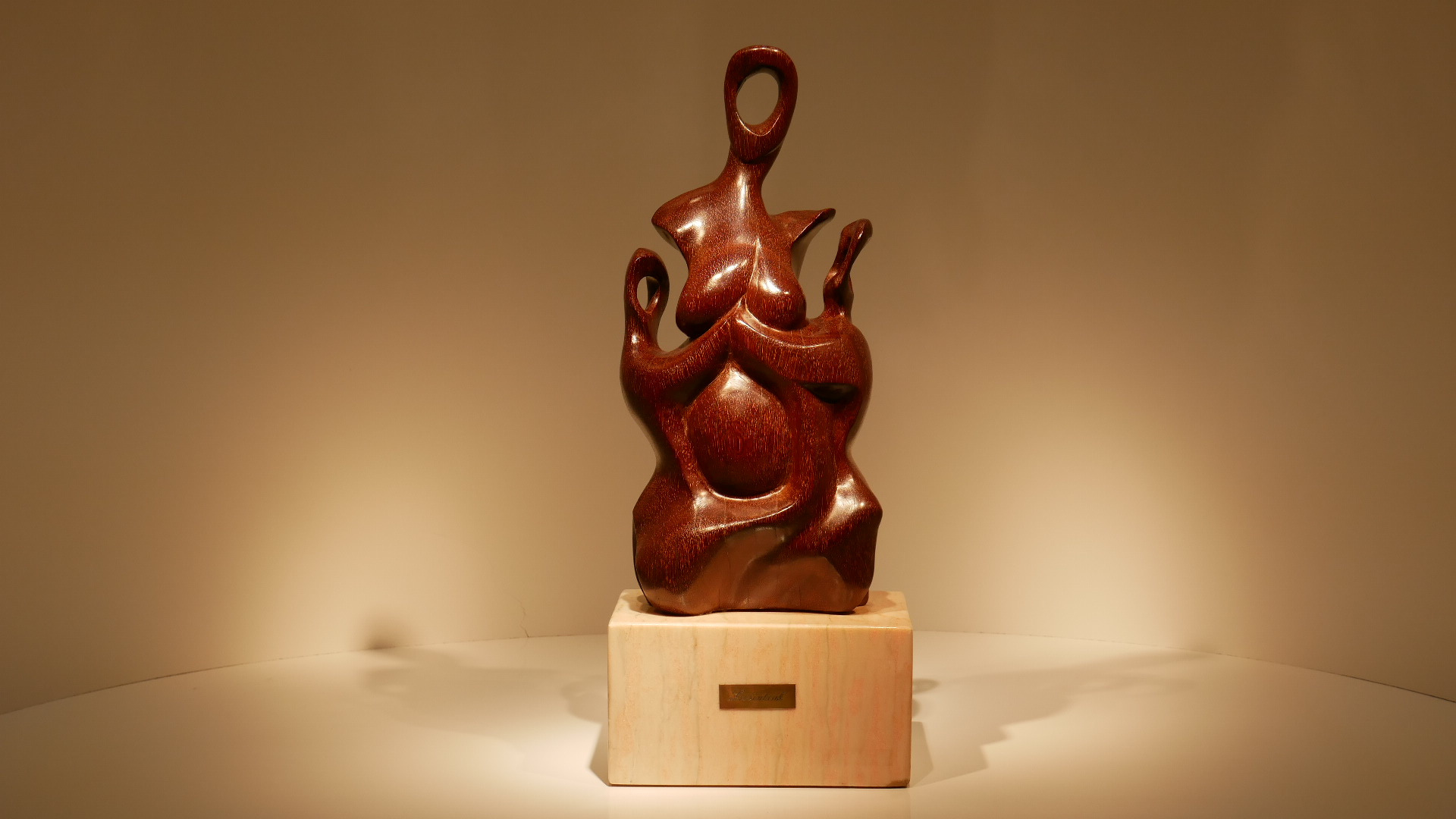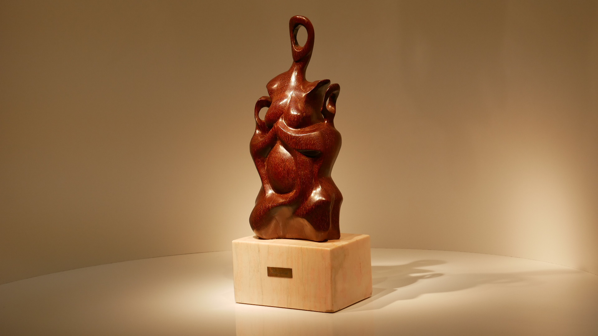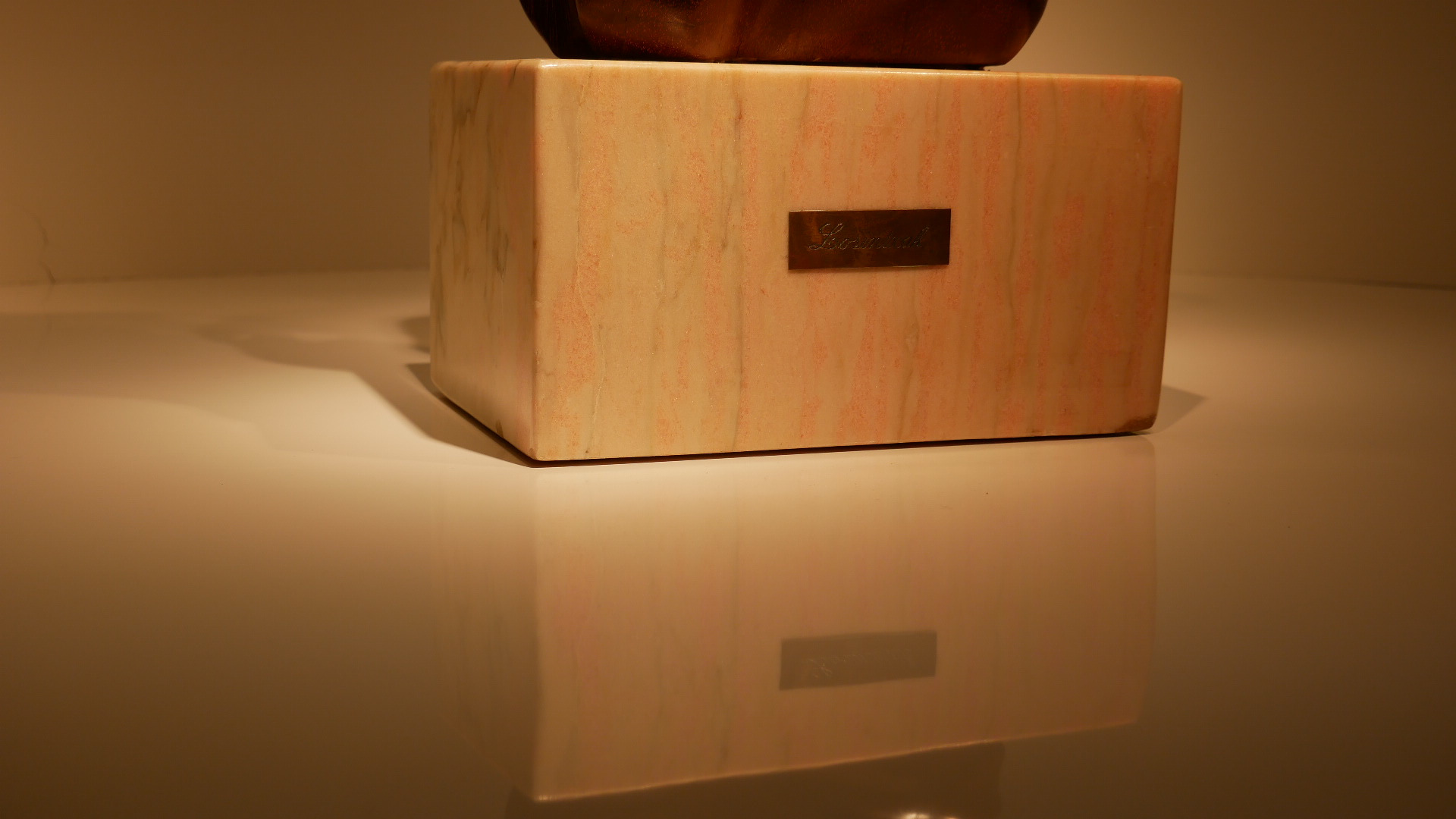 Madera de palo hierro procedente de una traviesa de ferrocarril sobre base de mármol rosa