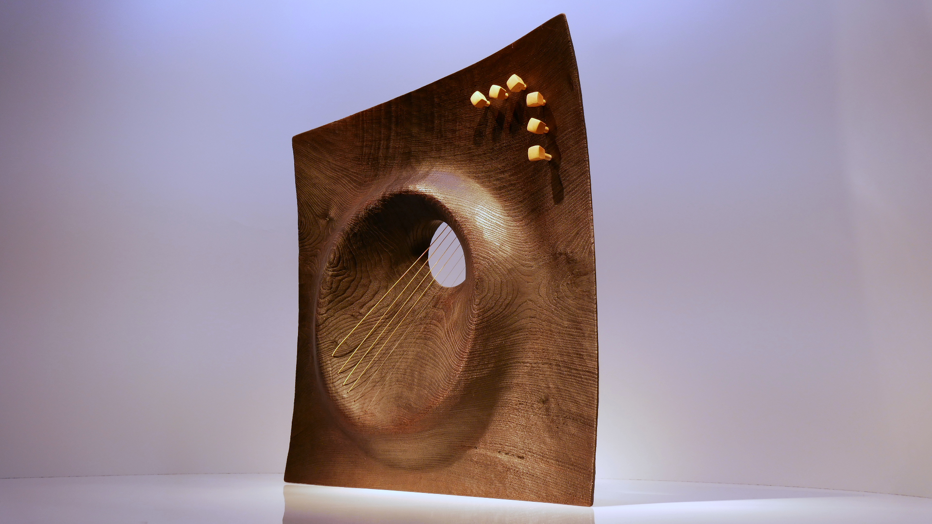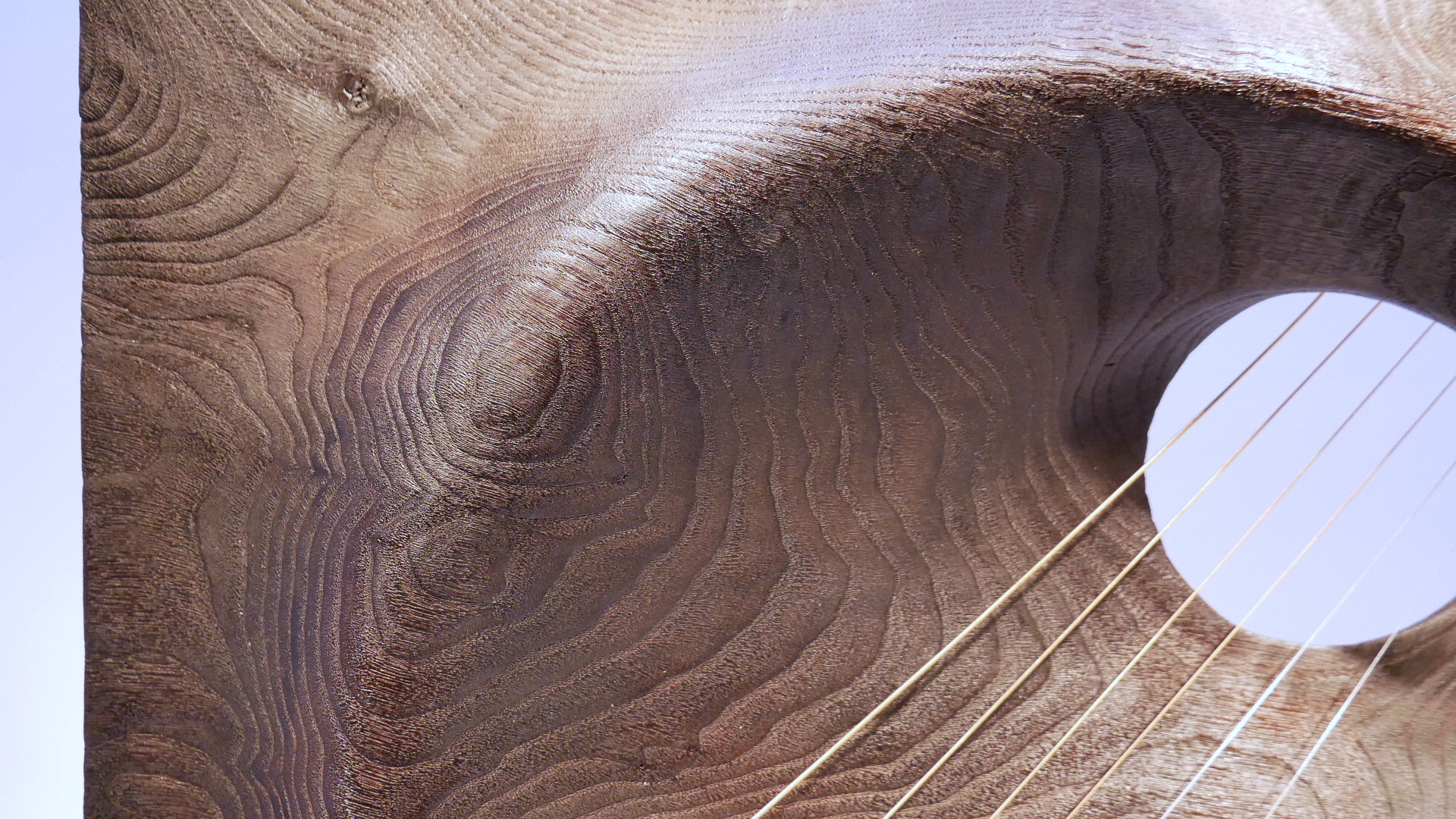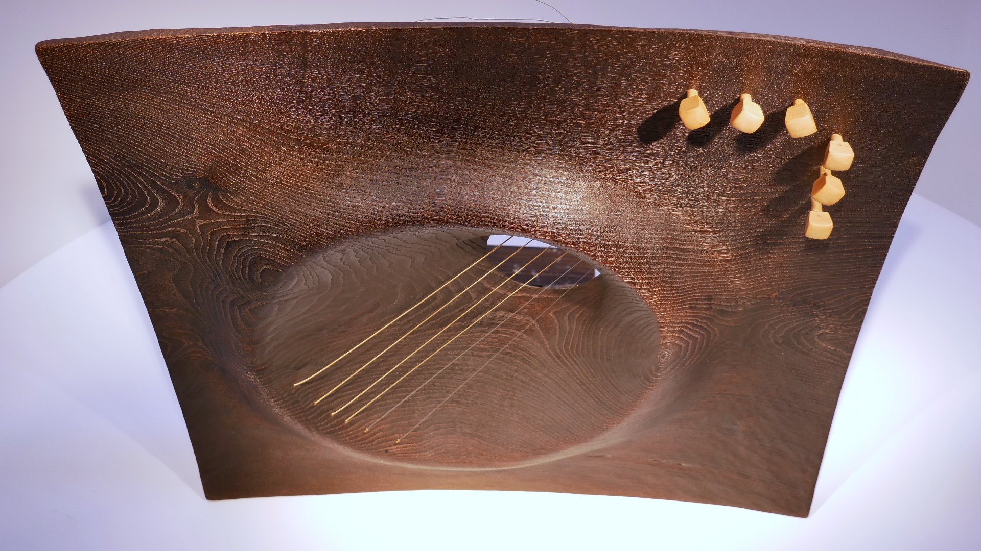 Kiskaldutako gaztainondozko kordofonoa. Cordófono de castaño calcinado. 54 x 54 x 6 zm.